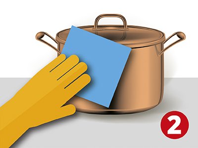 POUR SMAC COPPER CLEANER ON A CLOTH AND WIPE THE SURFACES TO BE CLEANED